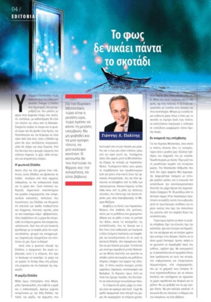 Στιγμές από την πορεία του Γιάννη Πολίτη ΑΡΘΡΟΓΡΑΦΙΑΔΙΑΚΡΙΣΕΙΣ 3 Ιουνίου 2025 Γιάννης Πολίτης 9views Κοινοποίηση FacebookTwitterPinterestWhatsApp Τελευταία άρθρα Άι Γιάννης το σημείο αναφορά μας 24 Δεκεμβρίου 2024 Όσα είχε γράψει για τον Γιάννη Πολίτη το Meganisinews 23 Δεκεμβρίου 2024 Τα παραμύθια και οι θρύλοι δεν πωλούνται 10 Δεκεμβρίου 2024 Με τη φωνή του πατέρα μου 29 Ιουλίου 2024 Χρώμα δεν αλλάζουνε τα ματια 28 Ιουλίου 2024 Σχετικά άρθρα Άι Γιάννης το σημείο αναφορά μας 24 Δεκεμβρίου 2024 Έλεγα πέρυσι σε ένα αφιέρωμα με το οποίο με τίμησε το Πρώτο Θέμα, ότι... Όσα είχε γράψει για τον Γιάννη Πολίτη το Meganisinews 23 Δεκεμβρίου 2024 Είναι «αστείο», να γράφω εγώ για τον Γιάννη Πολίτη. Θα ήταν όμως αμέλεια, και... Τα παραμύθια και οι θρύλοι δεν πωλούνται 10 Δεκεμβρίου 2024 ΜΟΛΙΣ ΒΡΑΔΙΑΣΕ, μαζευτήκαμε όλοι – ένα ολόκληρο χωριό – στην πλατεία που αγναντεύει τον... Με τη φωνή του πατέρα μου 29 Ιουλίου 2024 Έχασα τον πατέρα μου πολύ νέο. Ήμουν παιδί. Βασανίστηκα, πέρασα πέτρινα χρόνια και εγώ... Προηγούμενο άρθροΆι Γιάννης το σημείο αναφορά μας
